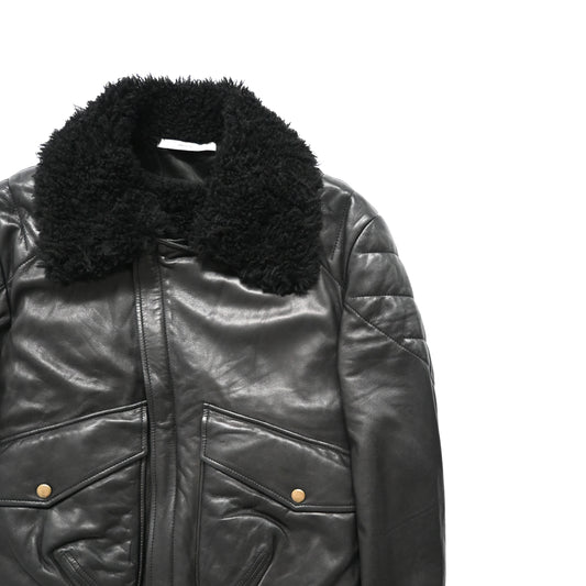 2002aw Yves saint laurent rive gauch boa docking leather jacket 48 by Tom ford