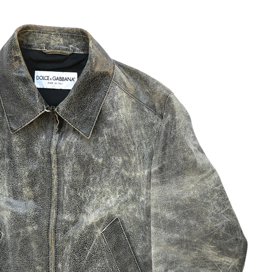 1990s dolce&gabbana vera pelle real crushed leather jacket 54